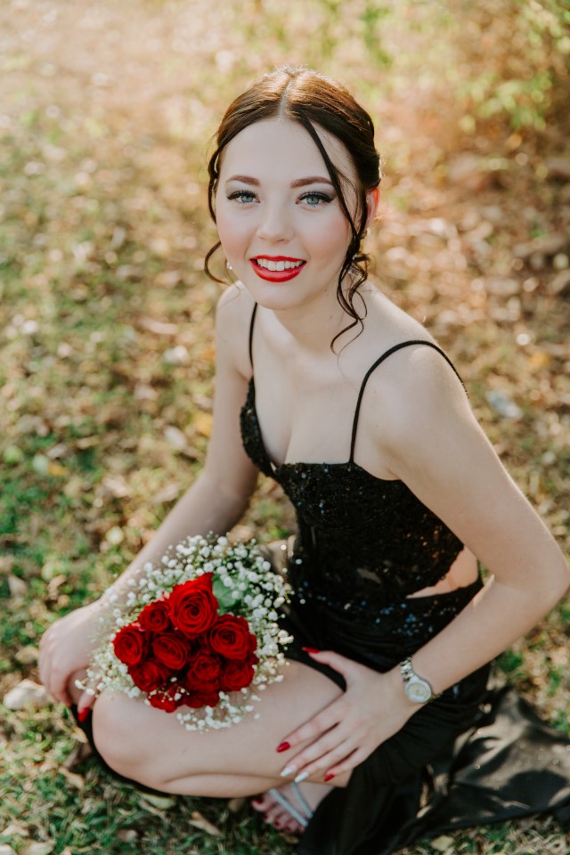 Die inspirasie vir my matriekafskeidrok het gekom uit ’n liefde vir klassieke elegansie en tydlose styl. Ek het nog altyd geglo dat eenvoud die sleutel tot ware skoonheid is, en daarom wou ek ’n ontwerp kies wat nie oordadig is nie, maar steeds ’n sterk indruk laat. Die fyn detail en die snit van die rok beklemtoon my natuurlike styl en laat my selfversekerd voel. Ek wou ’n rok hê wat nie net in die oomblik mooi is nie, maar waarvan ek oor jare nog met trots sal kan terugkyk op foto’s. Hierdie rok weerspieël vir my die perfekte balans tussen gesofistikeerdheid en subtiele glans, en dit het my geïnspireer om my matriekafskeid as ’n elegante, onvergeetlike ervaring te beleef.
