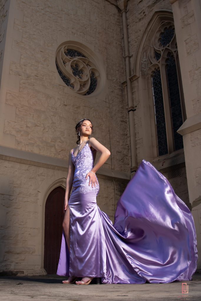My matriekafskeidrok vertel my storie sonder woorde. Dit verteenwoordig wie ek is. Die sagte lilac kleur en glans van die Dutchess satyn weerspieël my sagter, rustige persoonlikheid– die deel van my wat sag praat, maar diep voel. Die oop, lae rug is die showstopper. Dit wys die deel van my wat nie altyd sigbaar is vir almal nie, die kant wat selfvertroue uitstraal. Hierdie rok het vir my gevoel soos ‘n perfekte balans tussen sagtheid en krag, tussen wie ek altyd is, en wie ek besig is om te word.