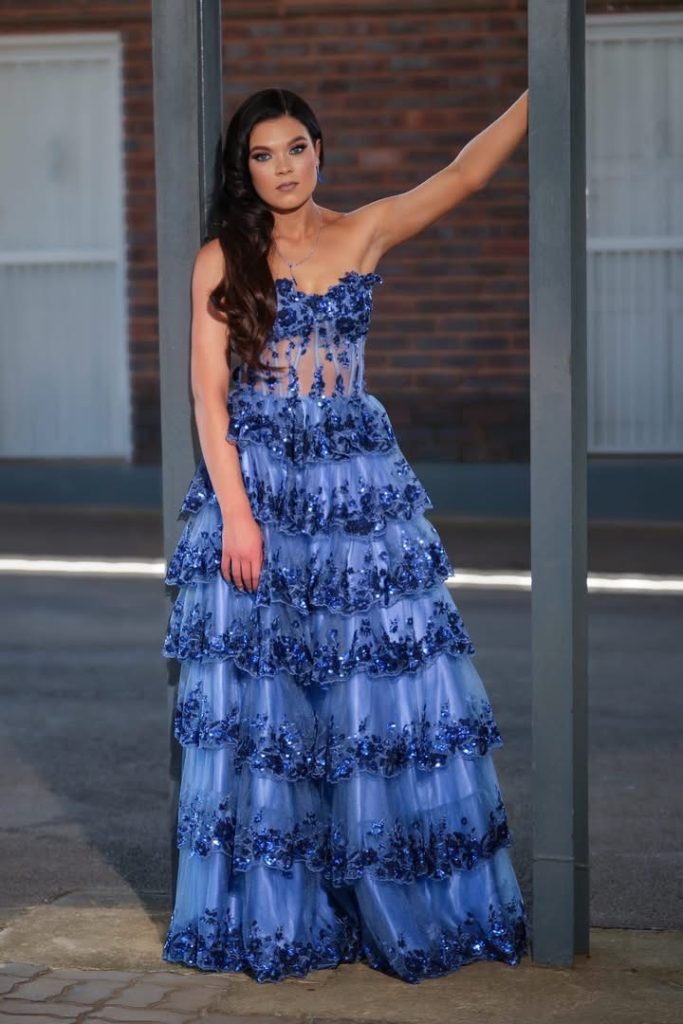 Ek het al jare lank ‘n spesifieke beeld in my kop gehad van hoe my rok moes lyk — ‘n beeld wat terugdateer tot my laerskooldae. Maar ek het nie self my rok gekies nie; die rok het my gekies. Toe ek dit sien, het ek aanvanklik gedink dit sal nie werk nie, maar toe ek dit aanpas, het dit gevoel asof dit perfek vir my gemaak is. Ek het my droomrok by Tres Jolie in Pretoria gekoop, en dit was asof dit net vir my gemaak is. Die rok pas perfek by my persoonlikheid — prinsesagtig, maar met ‘n moderne styl. Die verskillende skakerings weerspieël die speelsheid van my gees, en vang die kleur van my oë perfek vas. Dit is ‘n rok waarin ek mooi kon voel, maar ook vrylik en gemaklik kon beweeg.