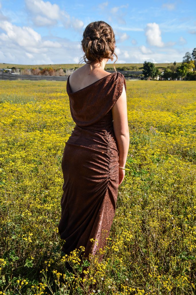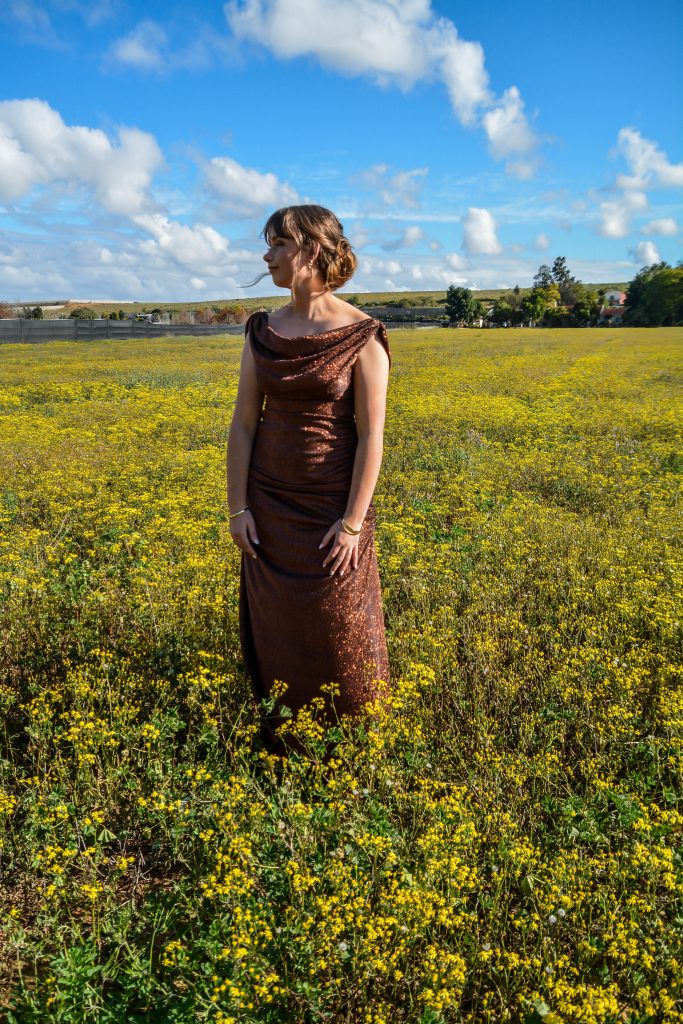 My inspirasie vir my matriekafskeidrok het begin met ’n kleuranalise. My kleurprofiel is ’n Sagte Herfs, en daarom was die regte kleur vir my gelaat ’n baie belangrike aspek. Uit al die herfskleure was die een (brons) wat ek gekies het die perfekte weerspieëling van my styl en persoonlikheid.