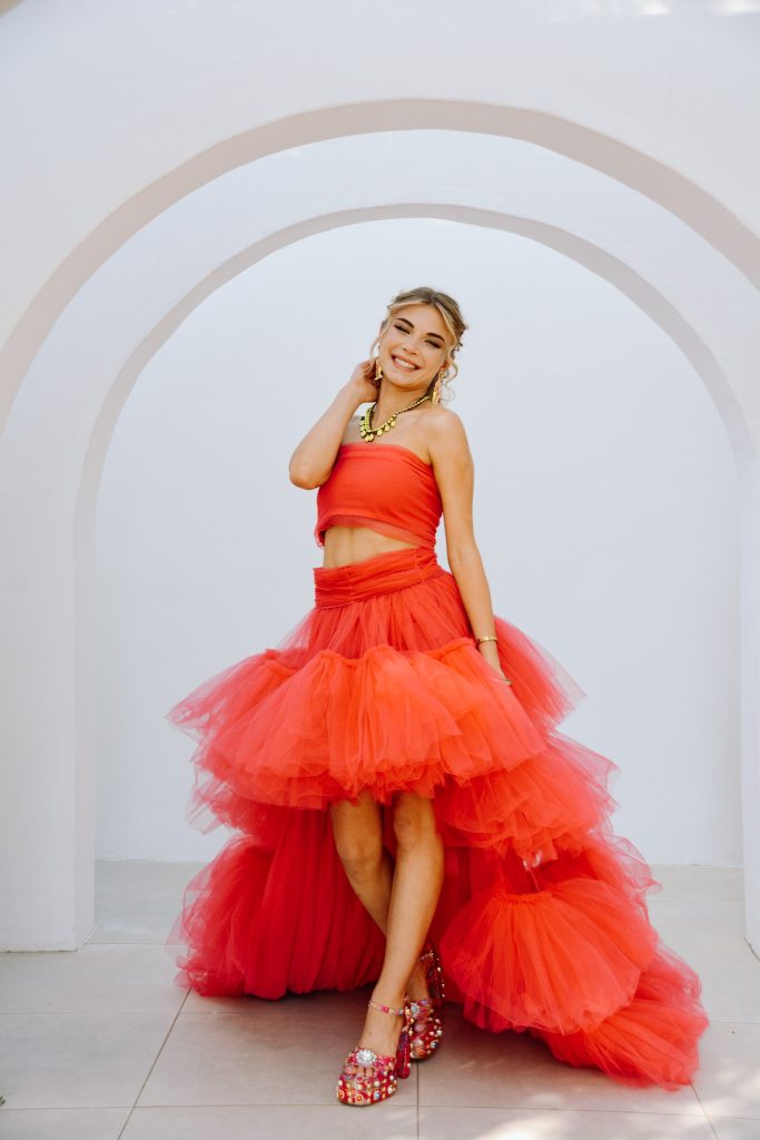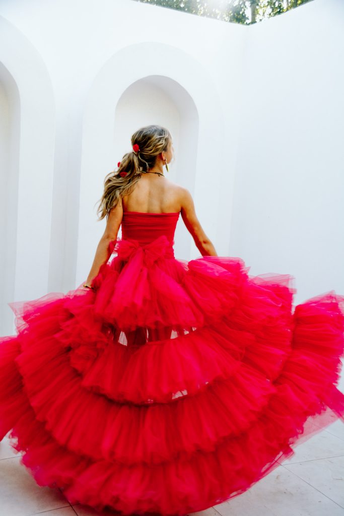 Ek het nog altyd geweet ek wil ’n dramatiese rok hê — ’n ware “show-stopper” — so dit was “go BIG or go home” Ek het inspirasie gekry van die Amerikaanse ontwerper Sheri Hill, en my romp is plaaslik gemaak deur ’n rompontwerper in Rustenburg. Tulle was die ooglopende keuse van materiaal, want dit het die dramatiese effek geskep waarna ek gesoek het. My ma en ek het die onderrok en boobtube self gemaak.💖