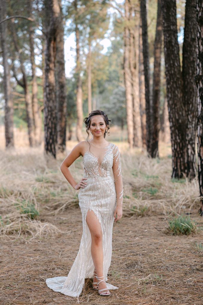 Ek het my inspirasie gekry uit ou Hollywood-glamour. Ek wou ’n rok hê wat my laat uitstaan, maar steeds my persoonlikheid wys — vol selfvertroue en met ’n tikkie glans.