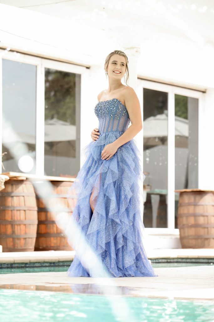 My rok is 'n elegante, moderne rok met 'n sprankelende glans. Die bokant van die rok bestaan uit fyn steentjies en het 'n korsetstyl. Dit gee luukse en stylvolle voorkoms. Die onderkant van die rok bestaan uit verskeie lae wat n vloeiende patroon gee.