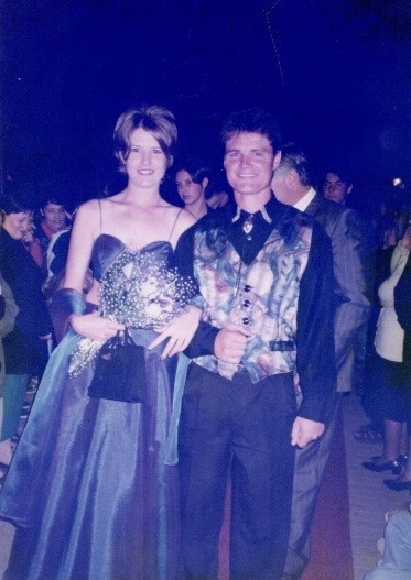 My ma en pa het 27 jaar terug na my ma se matriekafskeid gegaan. Hulle se ‘n foto is meer werd as ‘n duisend woorde. Die mooiste deel van die storie is was dat sy en my pa daardie tyd ook net metgeselle was en dit was haar spesiale rok. 27 Jaar later toe ek die geleentheid kry om die rok te kan dra het ek dit nostalgies met albei hande aangegryp en my ouma en ma het die rok herontwerp met die mooiste krale en skitter steentjie werk. Dit was ‘n projek van 4 maande wat hul met die hand elke kraletjie en steentjie aangewerk het en die transformasie was asemrowend. Dit was ‘n voorreg om dieselfde rok te kon dra verander vir my en so spesiaal. Nou het ek ook ‘n deel van die storie geword en kan ek dit eendag met my gesin deel. Die foto van 27jaar terug kry nou nuwe lewe ingeblaas in my fotos. “ Something old, something borrowed, something blue”