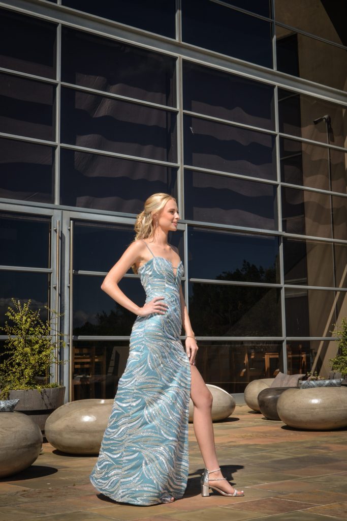 Die inspirasie agter my rok was 'n mengsel van kinderdrome en die skoonheid van die natuur — figuuromhelsende glans met glinsterende edelstene wat die vonkel van die see en die eindelose gloed van die lug vasvang. Dis 'n weerspieëling van dogtertjie drome, wat nou in haar eie lig tree.