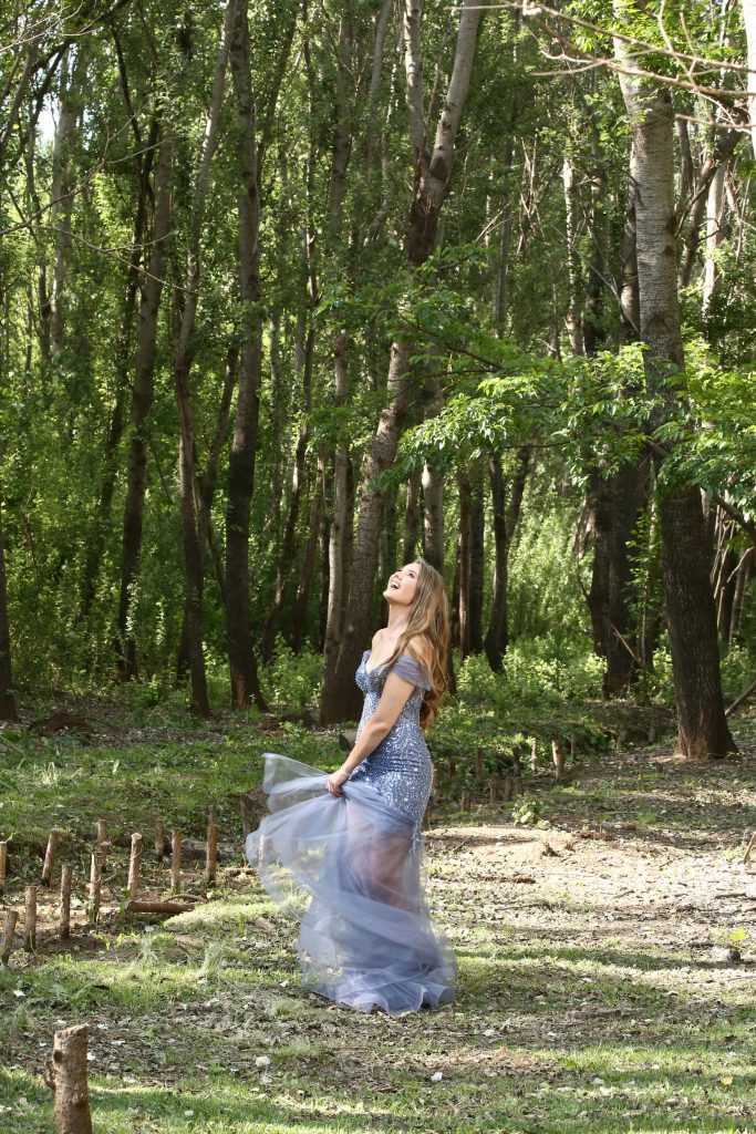 Die kleur – periwinkle dusty blue – was die eerste, “Dié is MY rok!” oomblik wat ek gehad het en was so oortuigend omdat dit ń kleur is wat nie gereeld gesien word nie. Die deursigtigheid van my rok onder is iets waarop ek eers later besluit het maar was defnitief die beste keuse wat ek kon maak. Dit het die deursigtigheid van die “corset” gedeelte uitstekend gekomplimenteer.