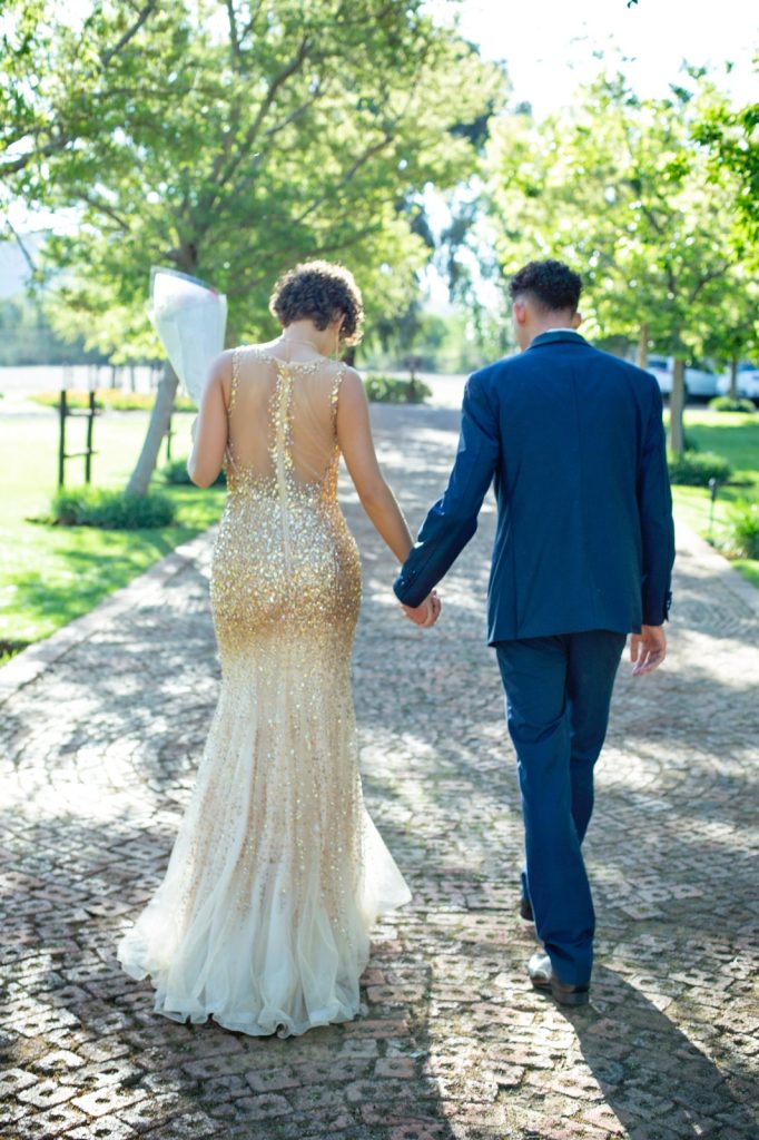 The right matric farewell dress can make any girl feel like royalty. Drawing inspiration from childhood admiration for the gowns of fairytale princesses, it represents a contemporary interpretation of the classic Cinderella dress with a more flattering waistline. The design reflects my personal style of classical elegance and sophistication. The inherent simplicity of the mermaid shape is elevated by the eye-catching crystal beading and subtle sway of the train. Furthermore, the various hues used, from the bright sequences to the soft champagne tones of the mesh, suit my skin tone perfectly and accentuate my features. In essence, the dress serves as a vehicle for self-expression, translating personal style and aspirations into a tangible and visually compelling form.