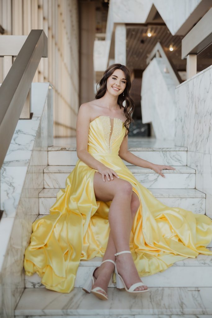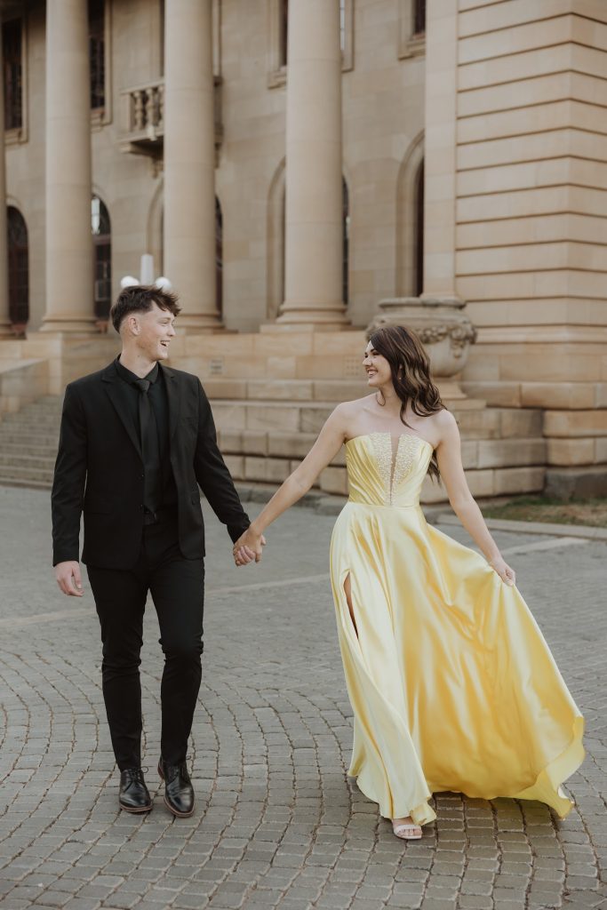 Ek het van die begin af geweet dat ek n geel rok wil hê omdat dit 'n unieke kleur is was niemand in my skool al gedra het nie so toe kies ek om die eerste te wees.
