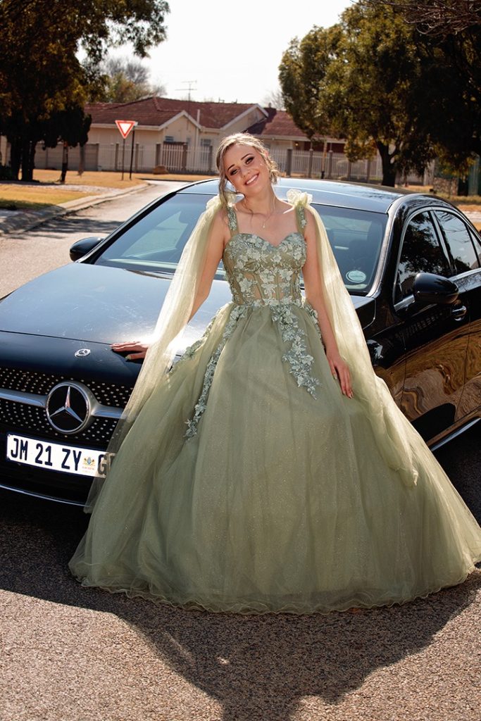 Ek het my matriekafskeidrok self ontwerp, want ek wou hê dit moet iets uniek wees wat regtig my styl weerspieël. Ek het baie inspirasie gekry uit verskillende ontwerpe, maar uiteindelik het ek my eie idees saamgesit – van die snit tot die kleur en detail. Dit was vir my belangrik dat die rok my persoonlikheid uitbeeld, so elke element is met sorg gekies. Ek het saam met ’n kleremaakster gewerk om my ontwerp tot lewe te bring, en die eindresultaat was presies soos ek dit gedroom het.