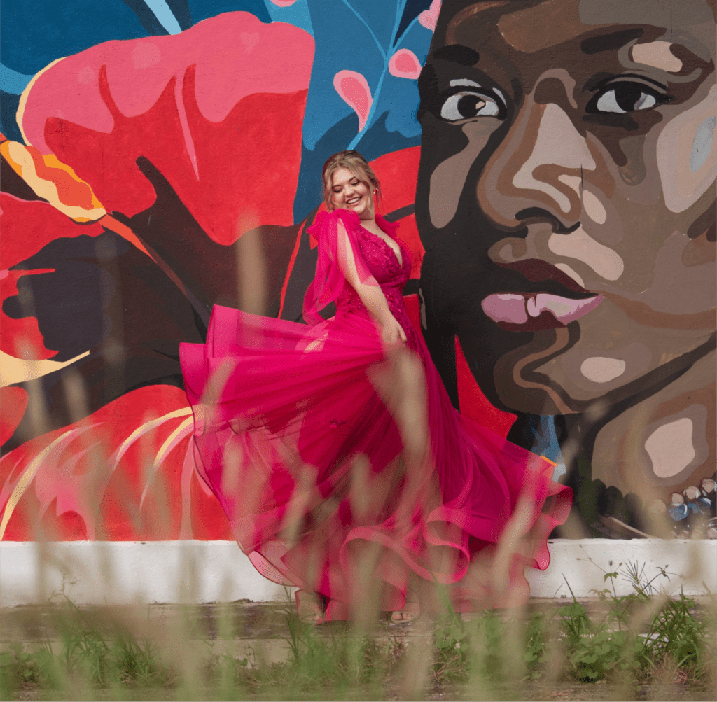 My inspirasie vir die rok kom eintlik uit wie ek is. Ek is iemand wat nooit stil raak nie en altyd iets te sê het, so ek wou ’n rok hê wat dit weerspieël, lewendig, vrolik en ’n bietjie ‘loud’, net soos ek! Ek het ure op Pinterest spandeer en soveel mooi idees gekry, maar niks het gevoel soos ‘ek’ nie. Eers toe ons begin rokke aanpas het, het ek gevoel hoe dit bymekaar val. Hierdie rok vang daardie deel van my persoonlikheid vas, sprankelend, vol energie en net reg vir ’n aand wat ek nooit sal vergeet nie.