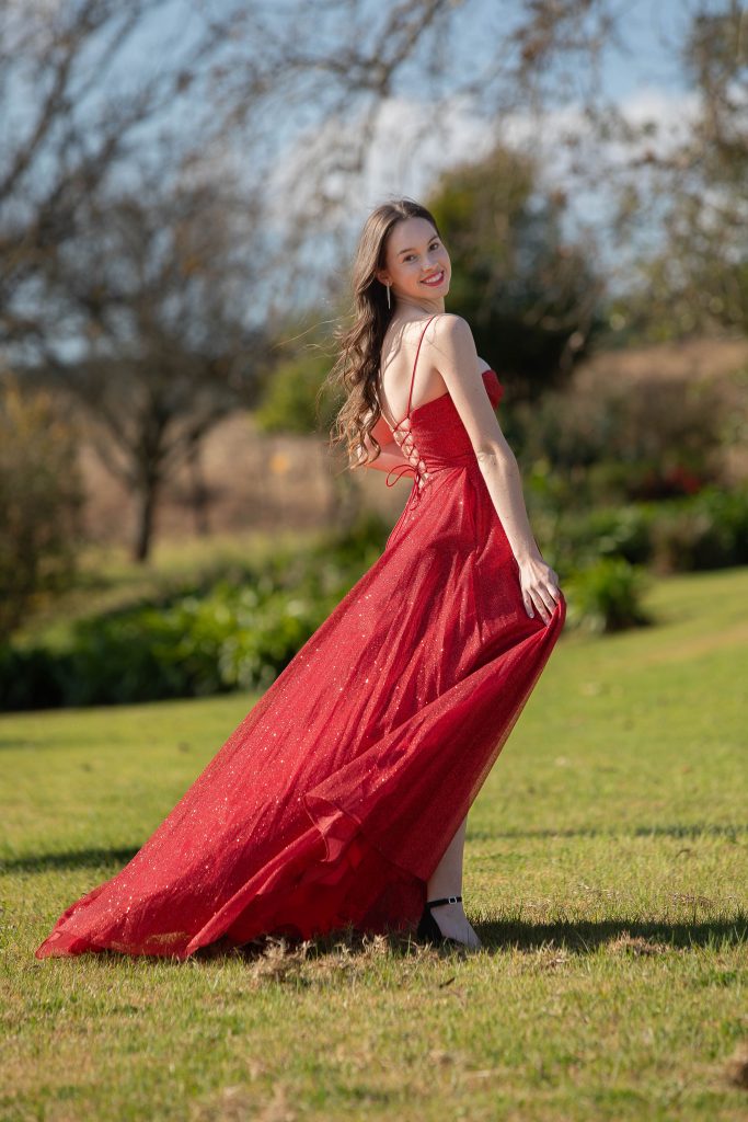 My matriekafskeidrok is 'n replikasie van my persoonlikheid, die rooi kleur is om my selfvertroue te weerspieël en die glinstering om 'n spoor van positiwiteit na te boots wat ek agterlaat – laat 'n bietjie vonkel oral waar jy gaan. Die beweging van die rok omvat die positiewe energie waarmee ek deur die lewe stap. Vir my is die dra van 'n rooi rok meer as net 'n modekeuse – dis 'n verklaring van moed, viering en transformasie. Daardie aand het my rooi rok meer as materiaal geword; dit was 'n weerspieëling van krag, van vervulde drome, en van 'n jong vrou wat dapper haar toekoms instap, onverskrokke om gesien te word, onverskrokke om te skyn.