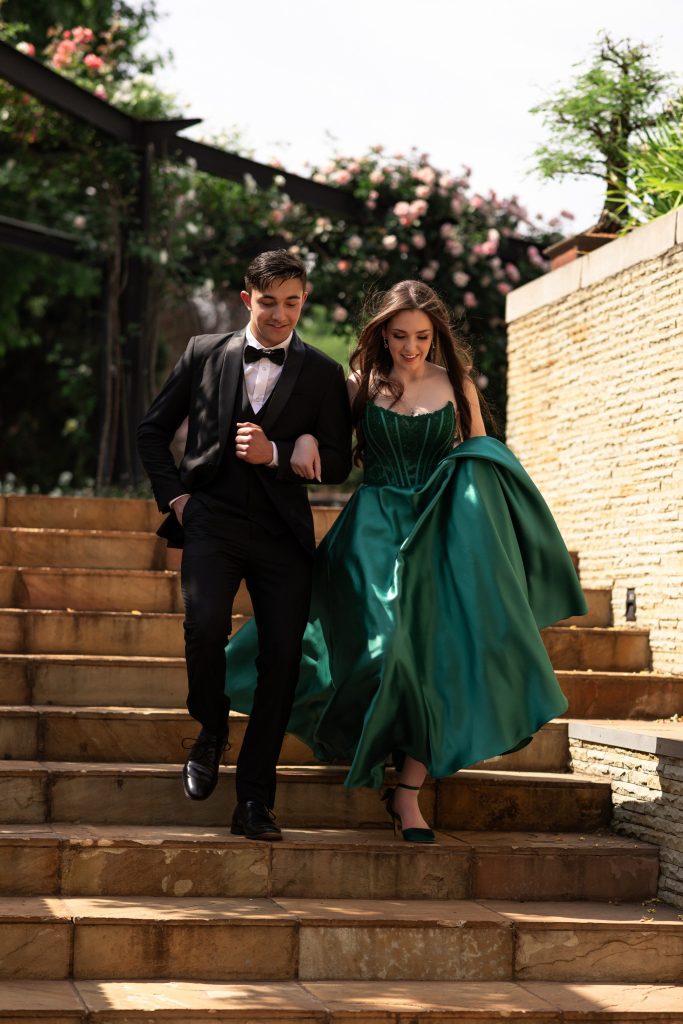 Die inspirasie agter my matriekafskeidrok kom uit ’n plek van groei, selfontdekking en die wens om my eie storie met stilte én styl te vertel. Ek wou nie net mooi lyk nie — ek wou iets voel. Die smaraggroen kleur het my onmiddellik aangetrek, nie net omdat dit elegant is nie, maar omdat dit my herinner aan vrede, balans en nuwe beginne. Dit voel soos die kleur van volwassenheid — van ’n meisie wat deur alles gegroei het en nou gereed is om as vrou haar eie pad te loop. Die satynstof het my laat dink aan sagtheid en krag wat saam kan bestaan — hoe iets glansend en delikaat tog sterk en vol teenwoordigheid kan wees. Die korset-bo-lyfie het vir my gevoel soos beskerming, amper simbolies van hoe ek geleer het om myself vas te hou; terwyl die vloeiende romp my laat onthou het om steeds vry te wees, te beweeg, te droom. Daardie aand, toe ek in die rok gestaan het, het dit nie net gegaan oor mode nie — dit was ’n oomblik van besef: ek is nie meer net die meisie wat gedroom het van hierdie dag nie… ek is haar.