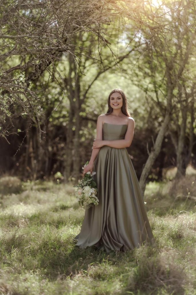 Aan die begin van die jaar toe ek begin kyk het na matriekafskeidrokke het ek geweet ek soek iets wat tydloos elegant en gemaklik is wat my persoonlikheid uitbeeld. Die olyfgroen kleur het my dadelik getrek en ek het geweet dit gaan my goed pas. Ek wou hê my rok moes my laat voel soos ’n prinses – elegant en selfversekerd. Die eenvoud van die rok, saam met die vloeiende onderkant het presies daardie gevoel gegee en my spesiale dag vir my perfek gemaak.