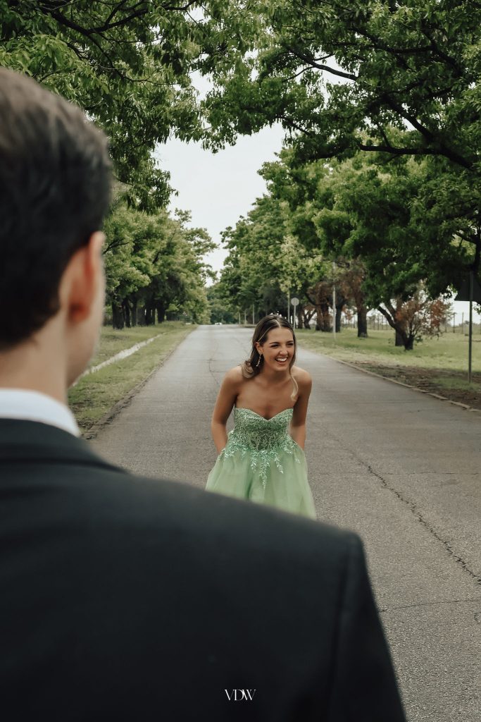 Ek het hierdie rok gekies omdat dit my laat voel soos my jonger self – die meisie wat altyd van prinsesse, glinster en drome gehou het. Die sagte groen kleur en fyn detail herinner my daaraan om daardie kinderlike vreugde en verwondering nooit te verloor nie. Dit voel asof ek ’n bietjie van my jonger ek saam met my dra terwyl ek hierdie nuwe hoofstuk van my lewe begin.