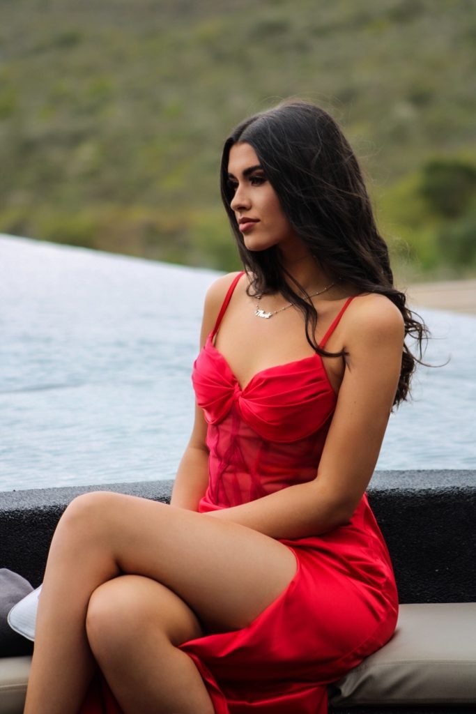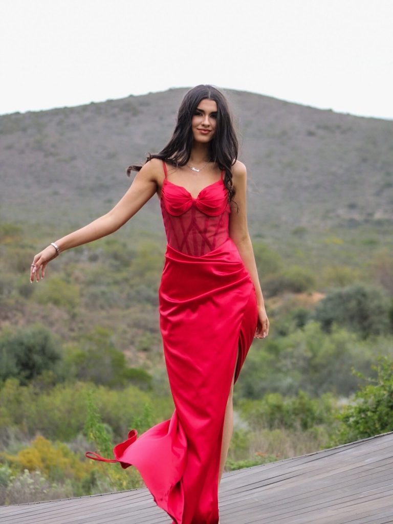 My inspirasie was om iets te dra wat my persoonlikheid weerspieël – sterk, passievol en vol lewe. Rooi simboliseer vir my selfvertroue, liefde en die idee dat drome waar kan word. Ek wou iets skep wat tydloos mooi is, maar steeds my eie stempel dra – en toe ek die rok aantrek, het ek geweet dis presies reg.