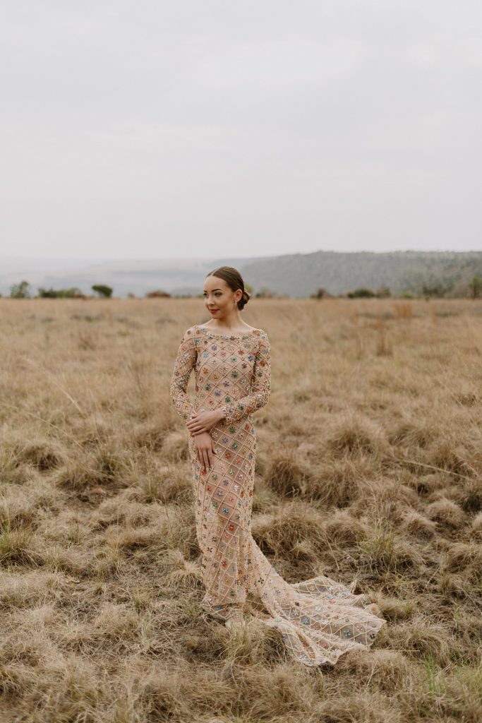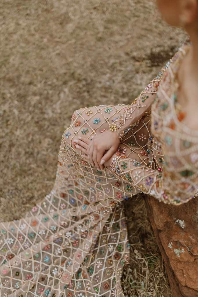 My rok is n ware kunswerk - elke klein kraal en blommetjie vertel n storie van ure se geduld, liefde en kreatiwiteit. Die rok is gemaak van fyn, deursigtige materiaal met duisende handgeplaaste krale. Binne elke blokkie pronk n unieke blomontwerp, wat my liefde vir kleur, natuur en detail uitbeeld.