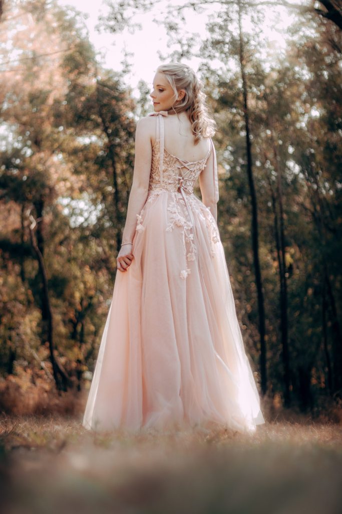Ek doen ballet al vir 14 jaar .Ballet het vir my vrede en selfvetroue gebou .Dit het my gemak gebring om veilig te voel in my eie vel.Ballet het my persoonlikeheid gevorm.Egalig en vriendelik is hoe ek myself beskryf .Snaaks en laf is ook deel daarvan.Die matriekafskeid was 'n dag waarvoor ek gevrees het.Ek was skaam en bang vir oordeel.Ek het gedink dat ek moes inpas om veilig te wees.Solank niemand sleg van my dink nie ,maar dankie vir my wonderlike ballet jare ,het dit my geinspireer om dit ten vore te bring in my rok.Ballet pienk en strikkies op die skouers.Materiaal wat sag waai in die wind en met geduld en vrede mense se oog vang.'n Rok wat nie skree vir aandag nie en gedra word in nederigheid.