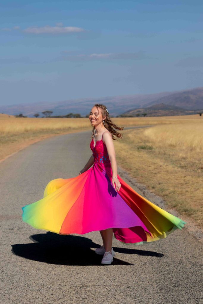 Ek is nog altyd n baie kunstige en kleurvolle persoon en ek hou baie van kleure. Ek hou ook baie van n reënboog so dit was ook deel van my inspirasie vir my rok.