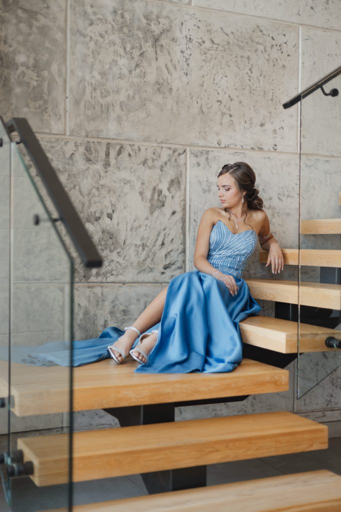 Ek het inspirasie gekry uit die droom om mooi en selfversekerd te voel. Die blou kleur simboliseer kalmte en grasie, terwyl die silk en korset-elemente vir my vroulikheid en styl uitbeeld. My wens was om ’n rok te dra wat regtig ‘ek’ is. Ek wou iets hê wat my laat voel soos die beste weergawe van myself — en hierdie rok het presies dit gedoen.