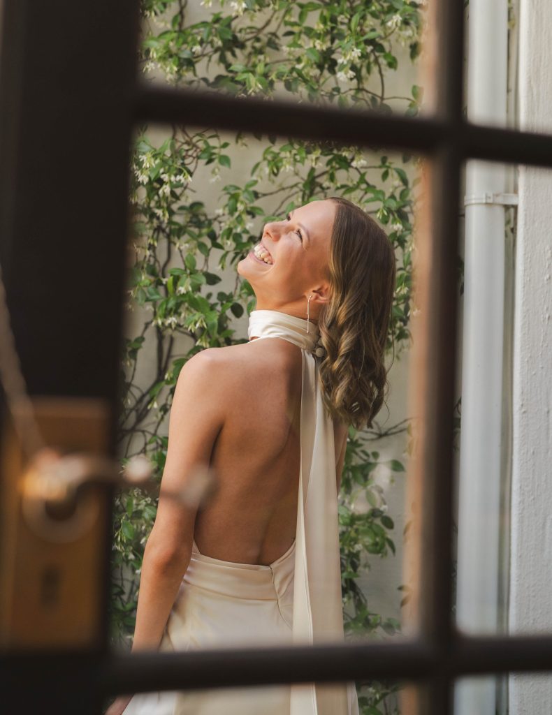 Die rok beteken vir my baie. Ek het vir ’n tyd gesukkel om te ontdek wie ek regtig is en wie ek wil wees. Nou dat ek myself beter verstaan, wou ek dit deur my rok uitbeeld. Dit is ’n manier om my identiteit en styl te wys – sag, elegant en selfversekerd. Elke detail van die rok weerspieël die liefde en tydloosheid wat ek in myself ontdek het, en dit laat my voel dat ek volmaak, mooi en gereed is om die nuwe hoofstuk van my lewe aan te pak.