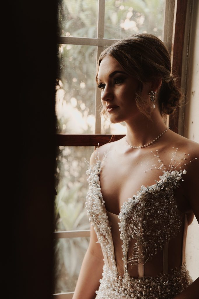 My inspirasie was “effortless elegance” – ek wou iets hê wat mooi is sonder om te hard probeer. Ek het my laat lei deur sagte neutrale kleure, glansende teksture en die idee van stylvolle eenvoud. Ek wou hê my rok moes nie net ’n kledingstuk wees nie, maar ’n weerspieëling van hoe ek gevoel het: vol vertroue, rustig en klaar om hierdie spesiale mylpaal te vier.