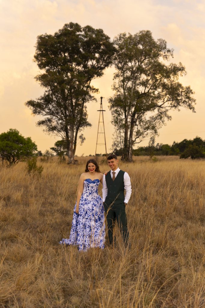 My inspirasie was ’n Sherri Hill-rok, maar ek wou dit met my eie flair iets besonders maak. Ek het die ontwerp effens aangepas sodat dit my persoonlikheid weerspieël en ’n bietjie meer uniek voel. Die patroon vir die drukwerk op die materiaal is deur myself ontwerp, waarna Buzuci Tekstieldrukkers die lap gedruk het. Die rok is daarna volgens my aangepaste patroon gemaak deur Alda Coetzer.