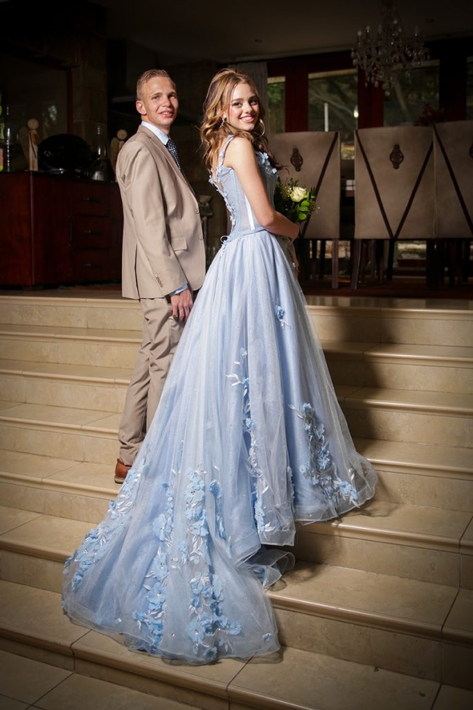 Die inspirasie agter my matriekafskeidrok het gekom uit my liefde vir dinge wat sag en elegant is, maar tog ’n bietjie uniek en onverwags. Ek wou iets hê wat soos ek voel – sterk, dromerig en vol lewe. Die ligblou kleur het my dadelik laat dink aan ’n sprokie, amper soos moderne Aspoestertjie-vibes, maar met my eie draai daaraan. Ek wou hê dat die rok nie net mooi moes wees nie, maar ook iets wat wys hoe ver ek gekom het – van ’n skooldogter tot iemand wat gereed is vir die volgende hoofstuk van haar lewe.