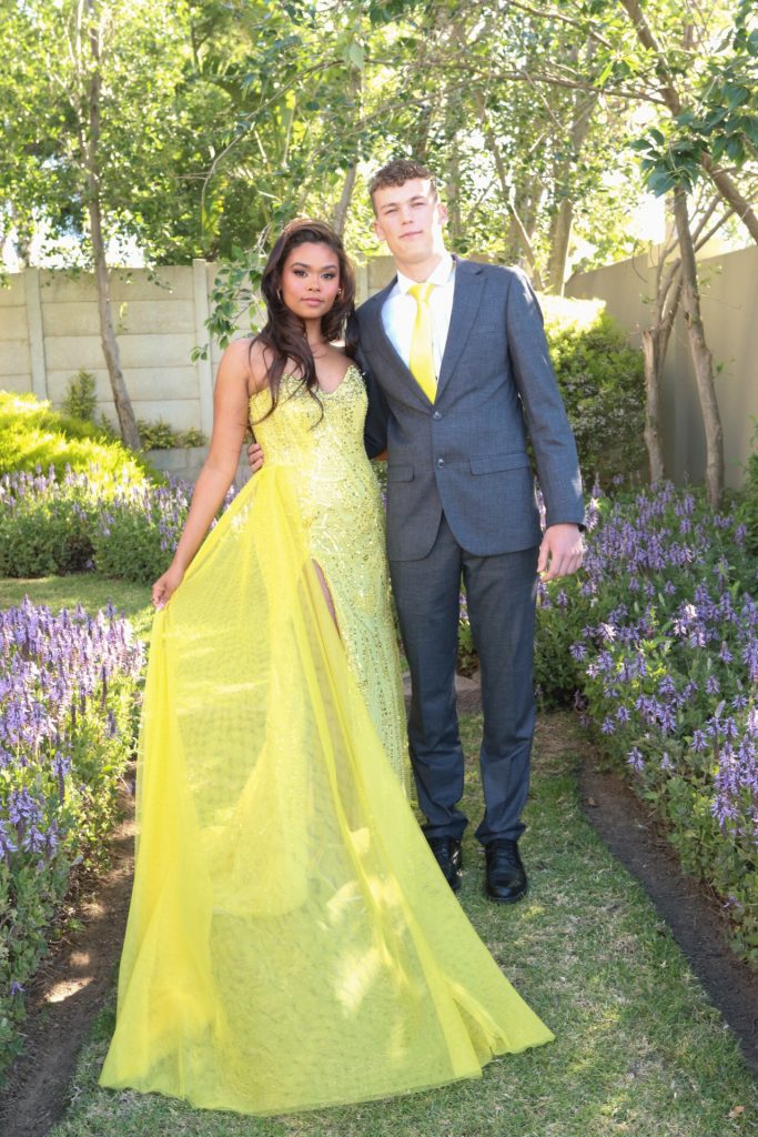 Die ontwerper van my matriekafskeidrok is Lauren Reynard (Lauren Couture) wat vanaf die eerste konsultasie verstaan het dat sy my persoonlikheid deur my rok moes weerspieël. Sy is baie professioneel en spesialiseer in trourokke. Geel is my gunsteling kleur en die detail wat sy op my rok aangebring het my storie uitgebeeld.