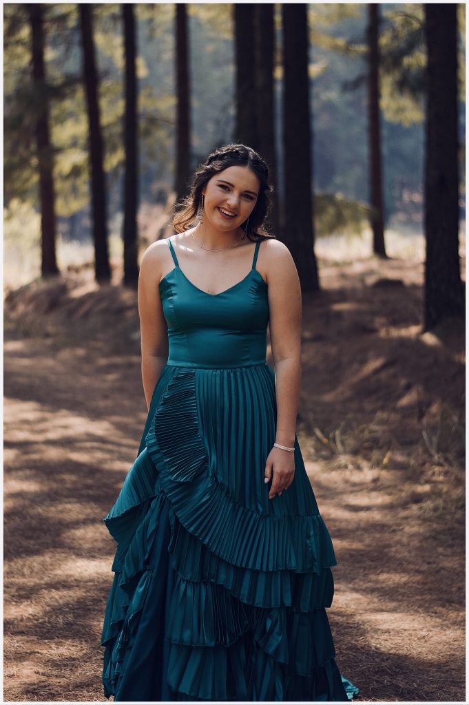 My matriekafskeid rok is iets waaroor ek nogaltyd oor droom asook my ma. My gunsteling kleur was nog altyd blou ,maar die kleur van my rok het ek besluit toe een van my vriendinne vir my sê “Wow, Helene jy lyk so mooi in blou groen!” Die styl van my rok is iets waaroor ek baie gewonder het. Ek wou baie graag hê my rok moet klein valle hê ,maar ek wou ook graag ‘n spesifieke geplooide rok hê. Ek het vir tannie Carike gesê dat ek sukkel om die besluit te neem toe gee sy vir my die voorstel dat ons altwee doen. Die bokant van my rok was heel eenvoudig terwyl my romp ‘n spaanse flair gehad het.