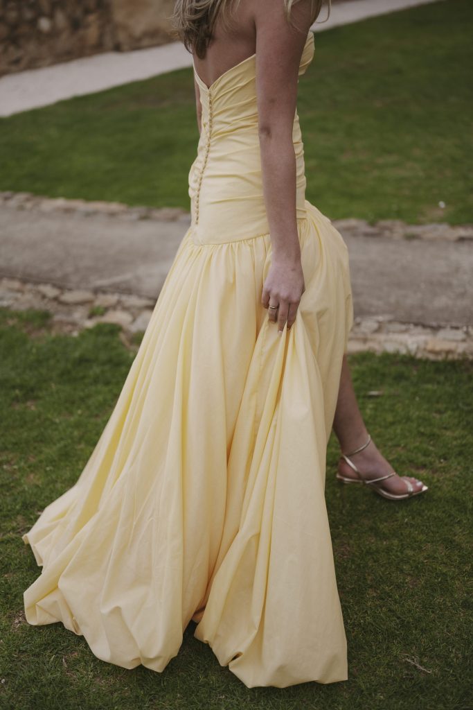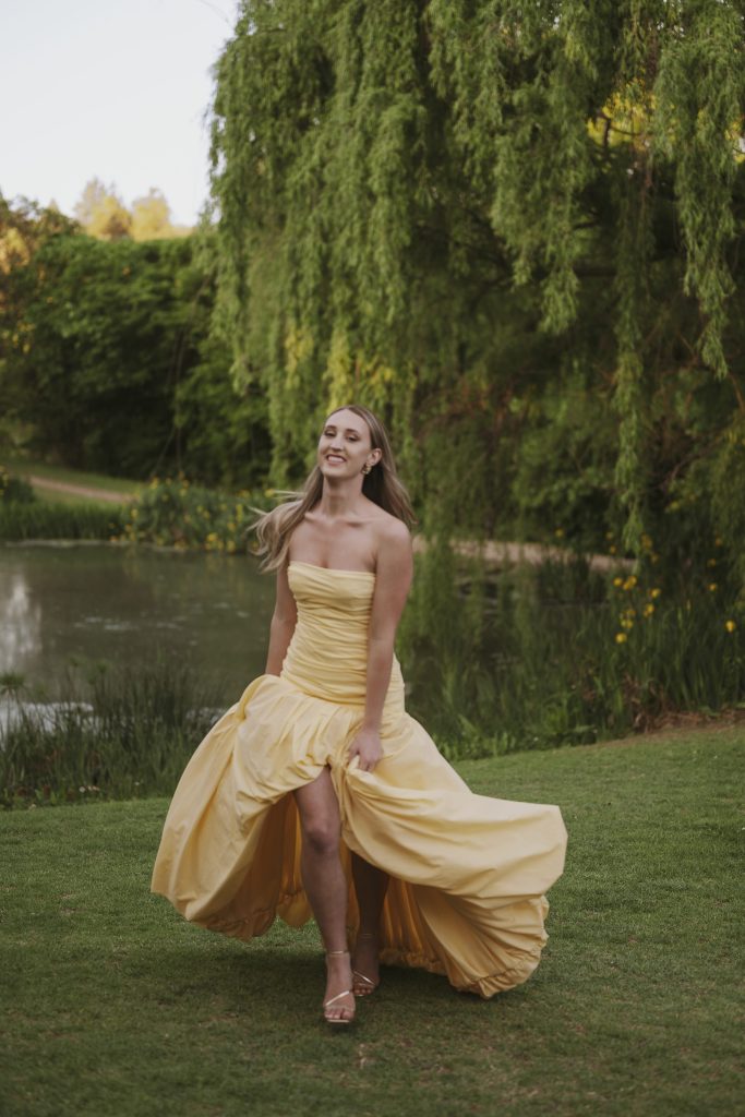 My inspirasie vir my matriekafskeidrok kom van Belle uit Beauty and the Beast. Die sagte geel kleur herinner my aan warmte, lig en vreugde, terwyl die bubble-vorm romp die speelsheid van ’n sprokiesprinses vasvang. Ek het ook die amaryllis blom as inspirasie gebruik – sy elegante vorm en fyn besonderhede weerspieël die delikatesse en skoonheid wat ek in die rok wou hê.