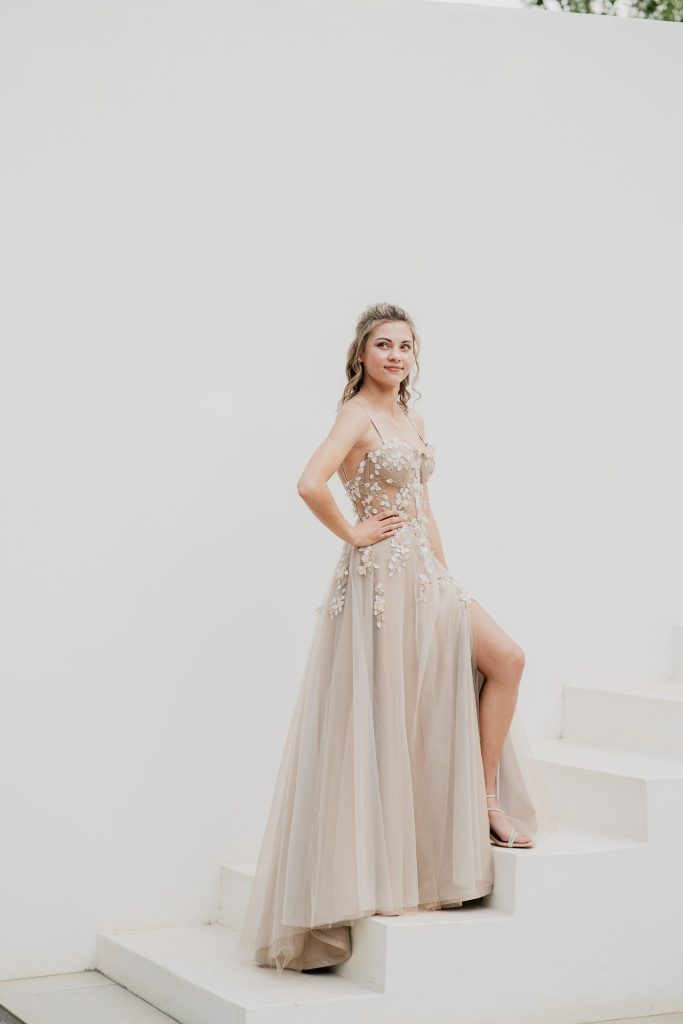 Ek wou hê my rok moes vertel van wie ek is ’n meisie met ’n sagte hart n liefde vir die natuur en diere. Die inspirasie was daardie rustige skoonheid wat jy in die veld kry — eenvoudig, maar tog asemrowend. Ek het iets gesoek wat my natuurlike styl kombineer met ’n tikkie sprokie, want elke meisie verdien haar prinsesoomblik.