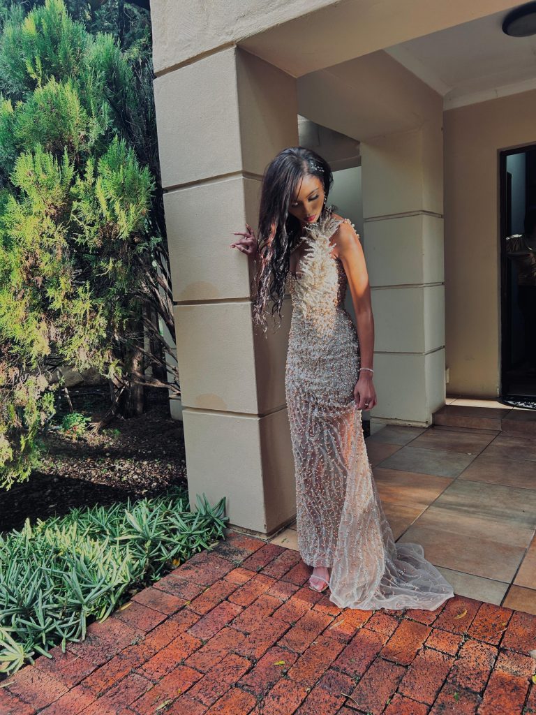 My rok beteken vir my meer as net mode – dit is ’n simbool van wie ek geword het. Die diamante herinner my aan my krag, aan hoe ek deur druk en uitdagings moes groei om te skitter. Die pêrels simboliseer sagtheid, grasie en die kalmte wat ek in myself gevind het. Elke detail op die rok vertel ’n storie van groei, selfvertroue en trots. Dis nie net ’n rok nie, dis my reis – van meisie tot jong vrou, van drome tot werklikheid.