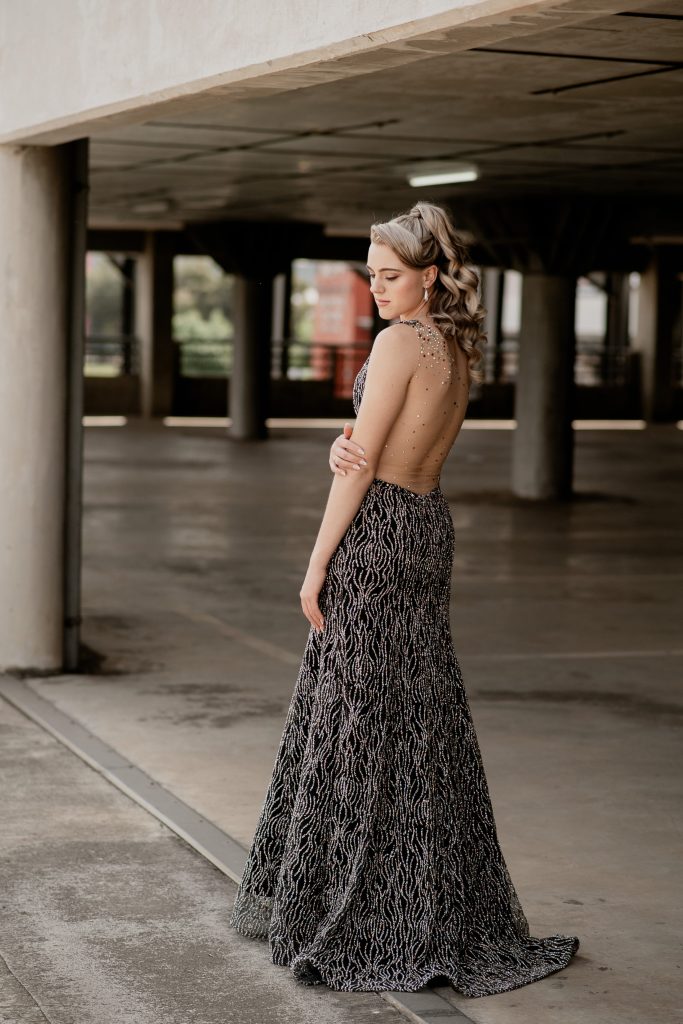 Die inspirasie agter my matriekafskeidrok was om iets te dra wat regtig soos ek voel en my persoonlikheid weergee. Ek wou hê dit moes elegant en stylvol wees. Ek het nog altyd gehou van ’n bietjie glans en detail, iets wat in die lig vang sonder om oorboord te gaan, en toe ek hierdie ontwerp sien, het dit dadelik vir my gesê: dis dit! Die een skouer en die sprankelende patroon gee vir my daardie balans tussen klassiek en modern. Ek wou nie net mooi lyk nie, maar ook selfversekerd voel, en ek dink die rok het presies dit reggekry.