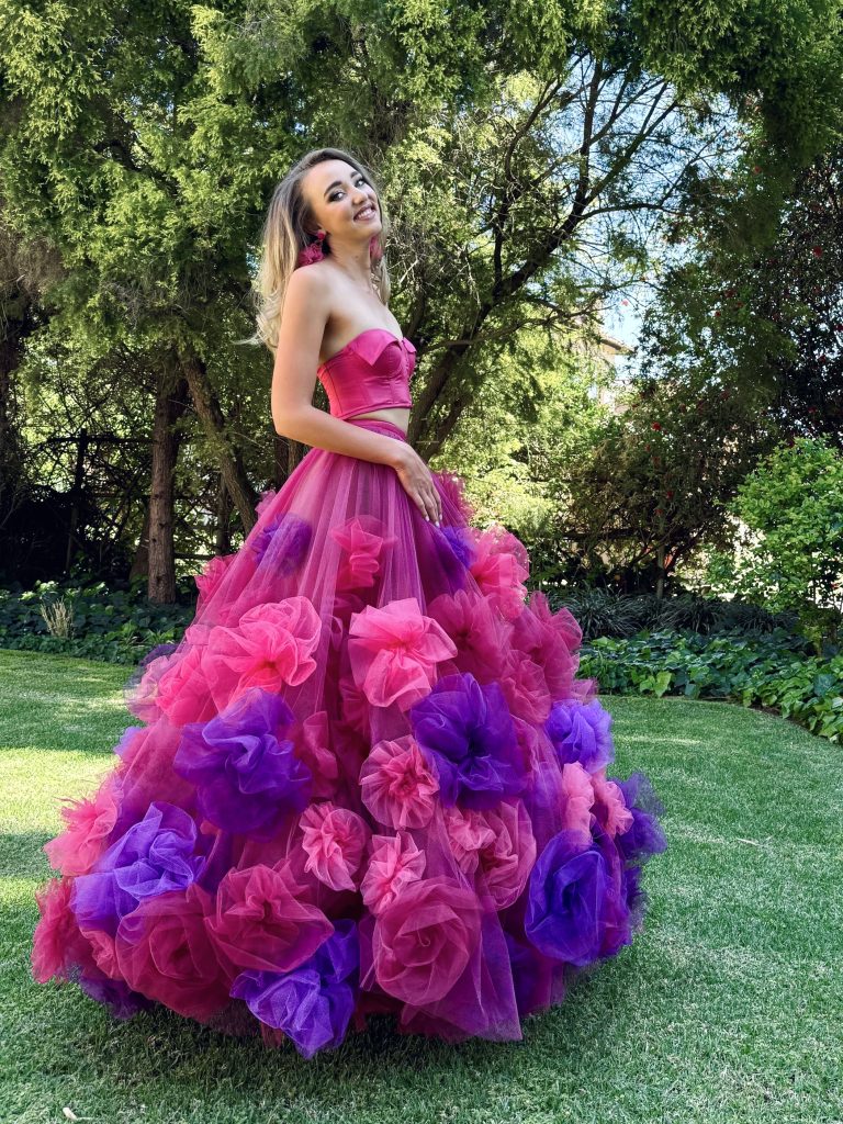 Ek het meer as net materiaal gevoel, ek het drome aangetrek, vasgewerk tussen die nate van hoop. Elke blom en sy kleur het my vreugde en lag vasgevang wat ek beleef het. My rok was nie net vir ’n aand bedoel nie, maar vir ’n begin — ’n simbool dat ek kan groei, straal, en droom sonder om ooit te vergeet wie ek is.