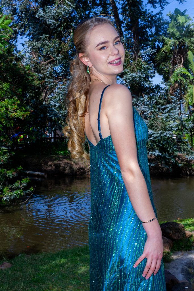 Ek het my eie matriekafskeidrok ontwerp en gemaak. Ek het self die patroon gemaak en toe die finale ontwerp gestik.