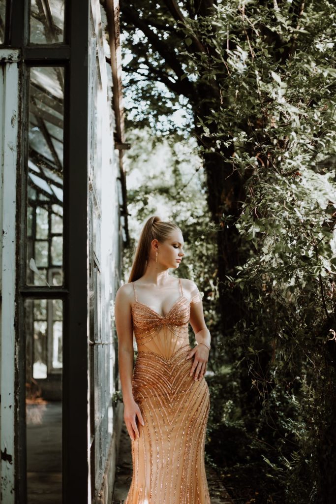 Wanneer ek n matriekafskeid rok gesoek het, het ek vir n rok gesoek wat sal beklemtoon wie ek aan die binnekant is; n elegante 'disco ball'. Ek het n rok gesoek wat my selfvertroue op sal bou en wat sal wys hoe Rolien tenvolle is onder die kollig. My inspirasie was om eenvoudige skoonheid te wys terwyl alle aandag steeds na my getrek word, want wie wil nie daardie oomlik van stilte hê wanneer jy in n vertrek in stap nie. Ek wou aan mense wys dat hierdie stil dogtertjie n paar kniëe lam kan maak.