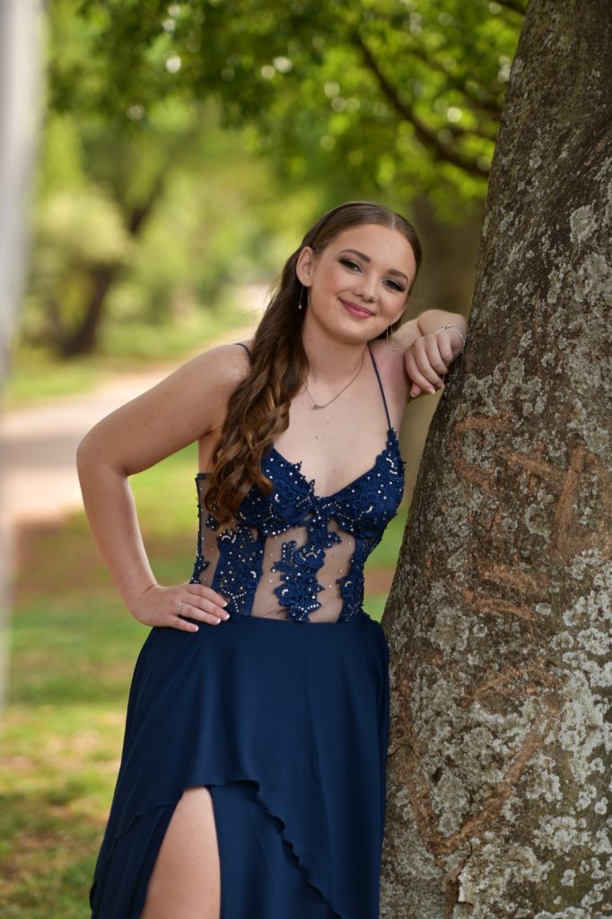 Die inspirasie agter my matriekafskeidrok kom van elegante eenvoud en die skoonheid van vloeiende beweging. Die diepblou kleur simboliseer selfvertroue en rustigheid, terwyl die sagte ontwerp en detail ń tikkie dromerige grasie byvoeg.