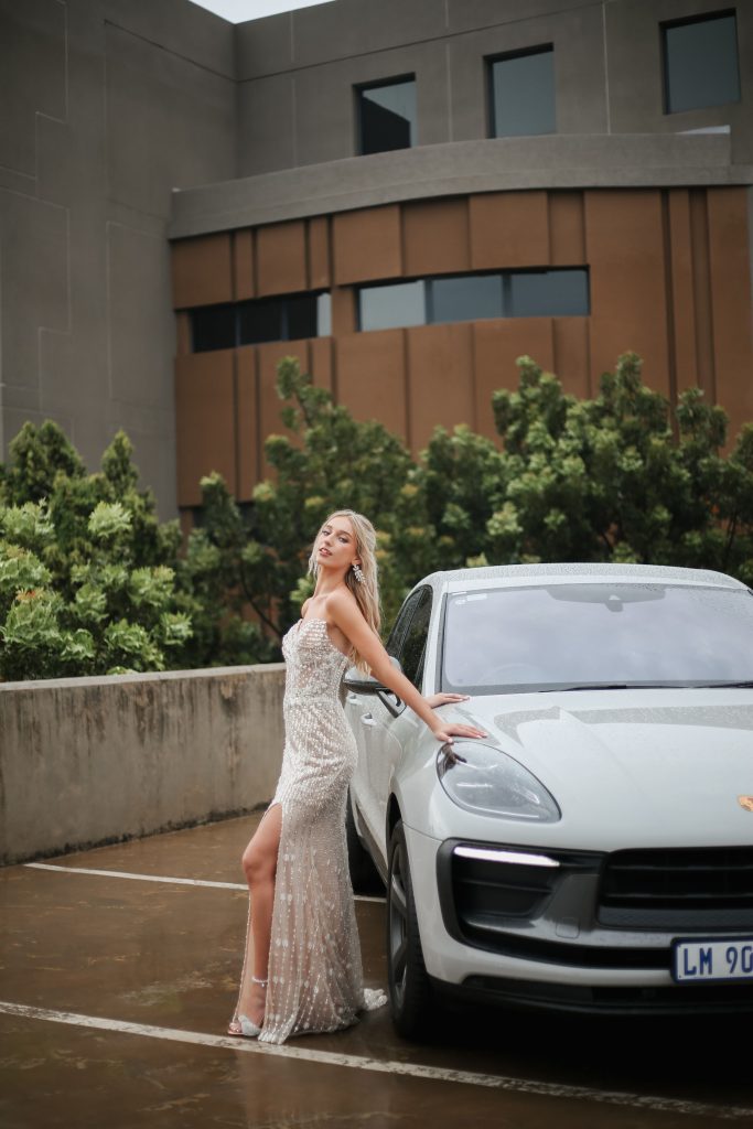 Dit dra 5 jaar se onthouding en sterkword van my hoërskool jare . Dit simboliseer die vrou wie ek vandag is en wat dit gevat het om hier uit te kom . Die rok simboliseer ook my sterk independance en ook sterk confident karakter .