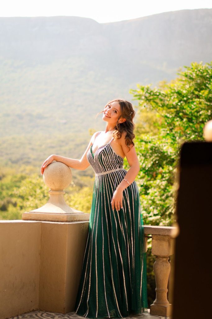 Ek het my groen en silwer matriekafskeidrok by Oriental Plaza in Sandton gevind. Tussen glinsterende winkelligte het daardie rok dadelik my aandag getrek—stylvol, tydloos en vol glans. Toe ek dit aantrek, het ek geweet: dit is nie net ’n rok nie, dis my oomblik van elegansie.
